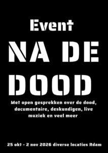 MUZIKAAL EVENT & DOCU NA DE DOOD Diverse locaties Rotterdam West, Oost, Centrum Zuid, Noord (25, 28, 29, 30, 31 okt en 1 en 2 nov 2026) Programma wordt nog bekend gemaakt